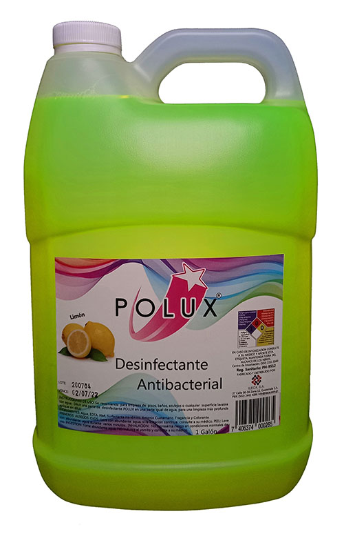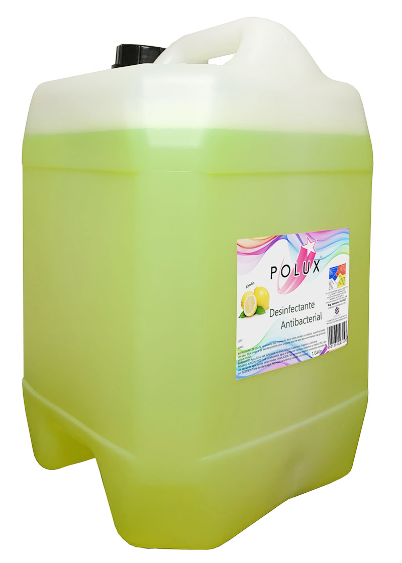 Desinfectante Antibacterial - Limon Nuestro desinfectante antibacterial POLUX fabricado a base de amonio cuaternario como ingrediente activo, ideal para desinfectar cualquier superficie inerte lavable con agua como pisos, baños y azulejos.